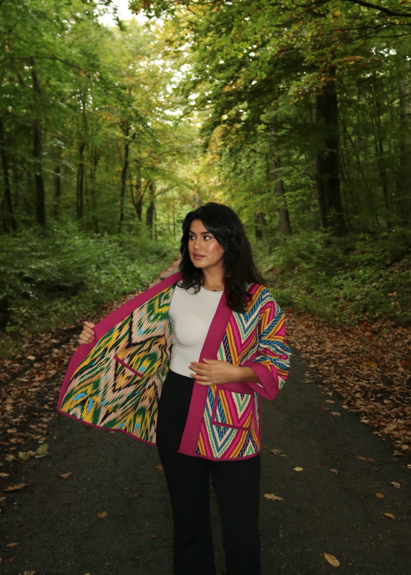 Doppelseitiger Mantel aus Usbekistan (Handarbeit, Baumwolle-Seide, One Size)