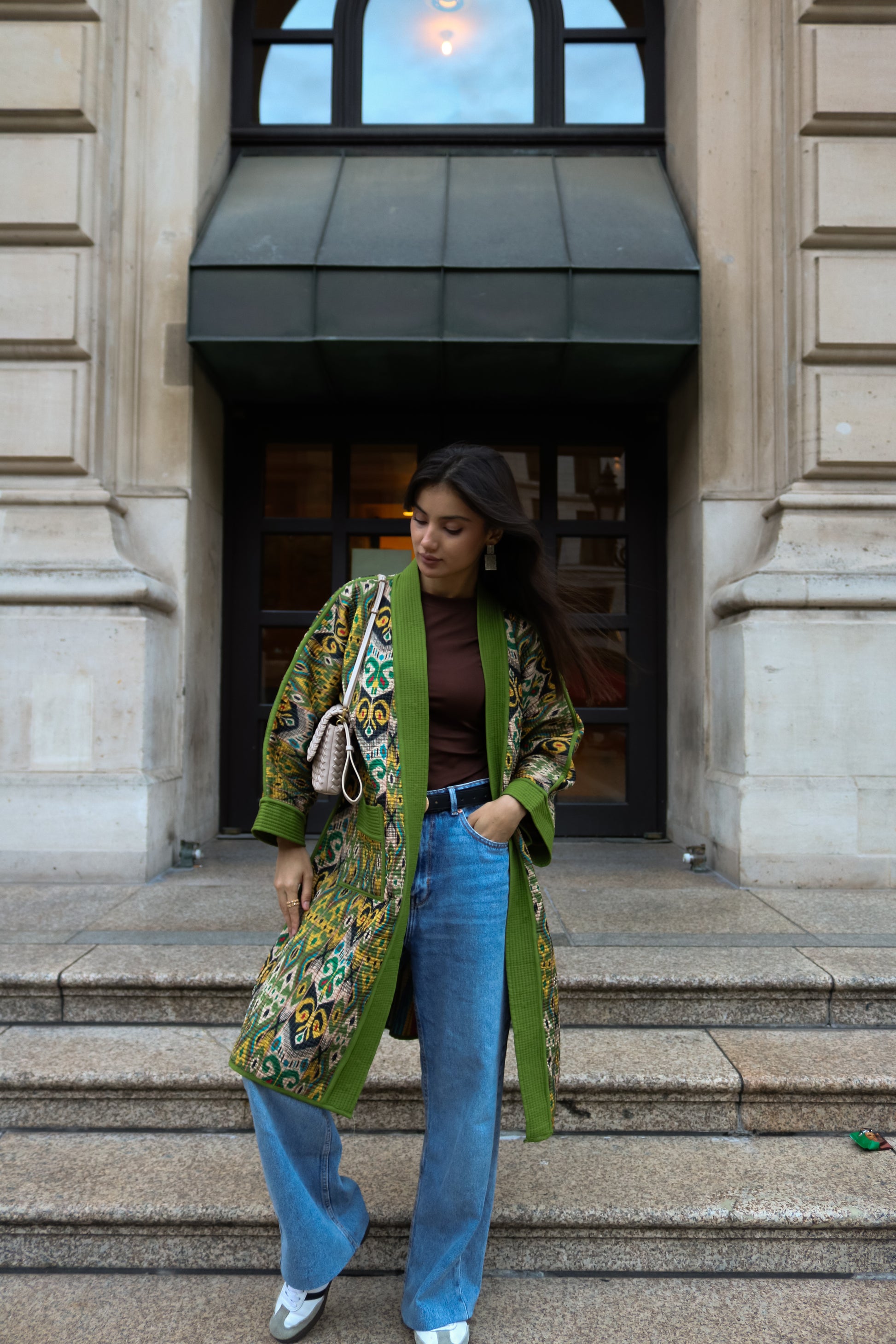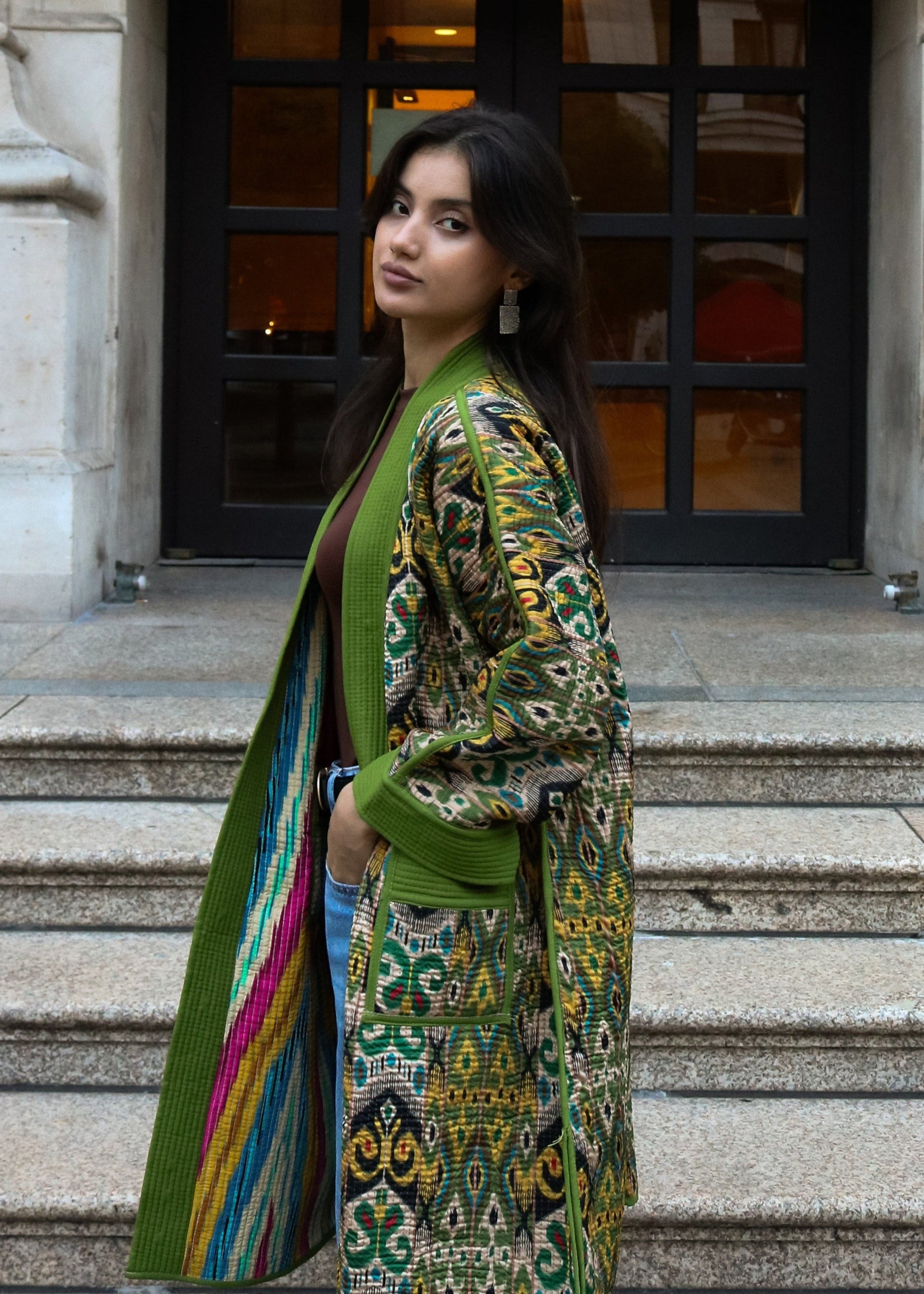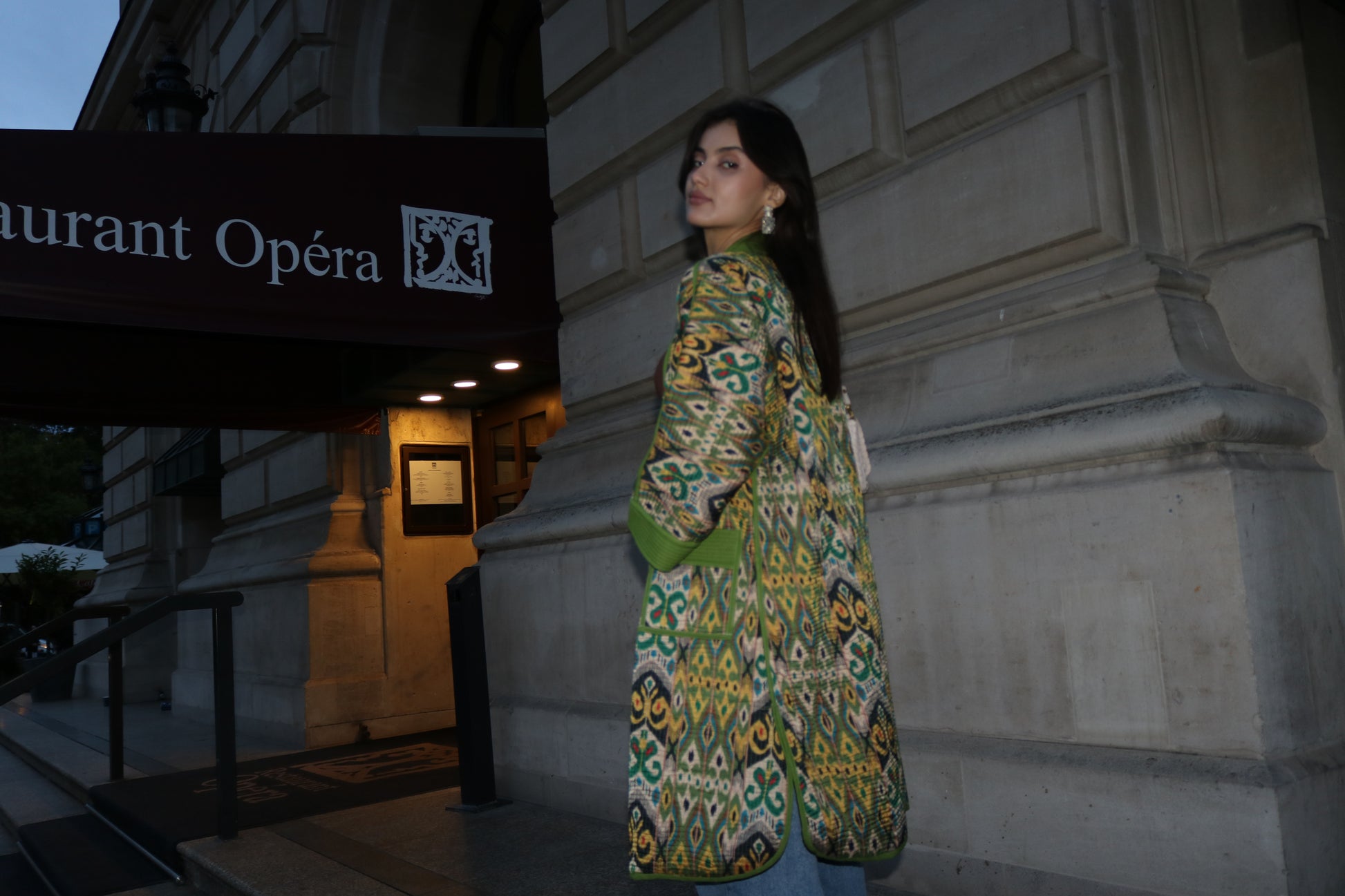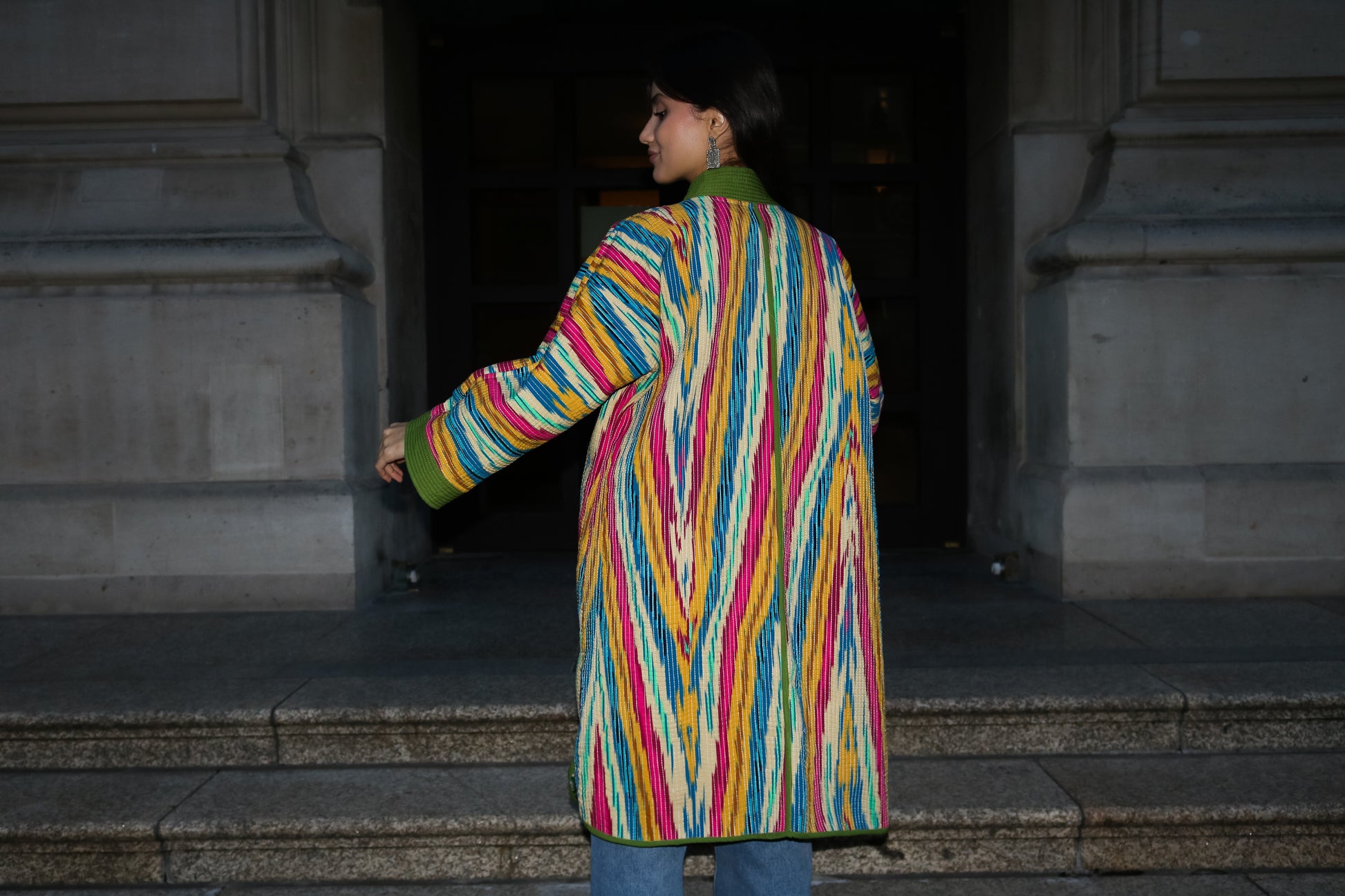 Das Besondere: Der Chapan ist wendbar – zwei Designs in einem Kleidungsstück. Ob farbenfroh oder dezent, er passt sich jedem Anlass und jedem Outfit an.