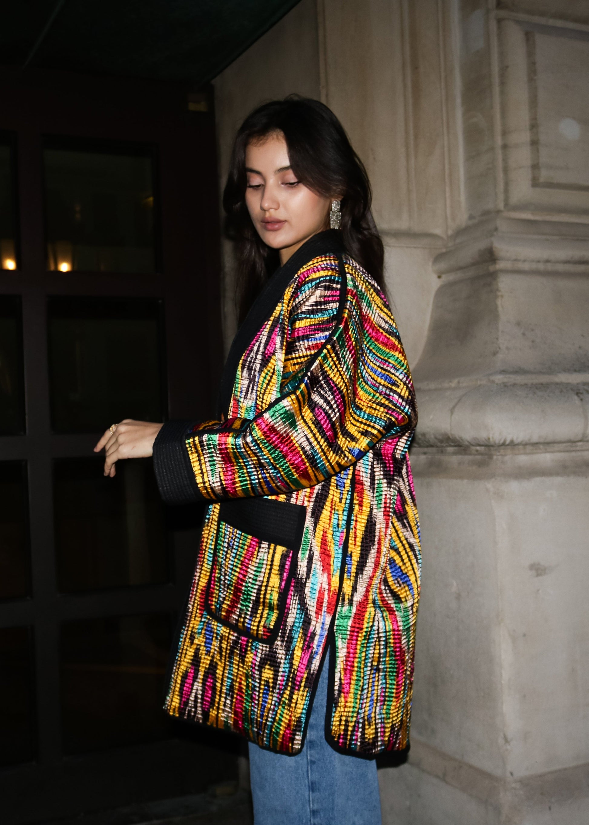 Das Besondere: Der Chapan ist wendbar – zwei Designs in einem Kleidungsstück. Ob farbenfroh oder dezent, er passt sich jedem Anlass und jedem Outfit an.